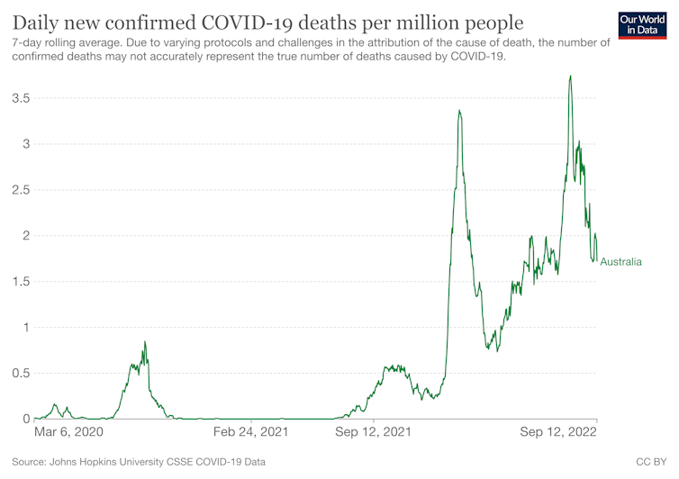 In Australia, we have just had our worst COVID wave in terms of the number of deaths and people admitted to hospital, a wave that is ongoing with thousands still in hospital and around 360 people dying each week.